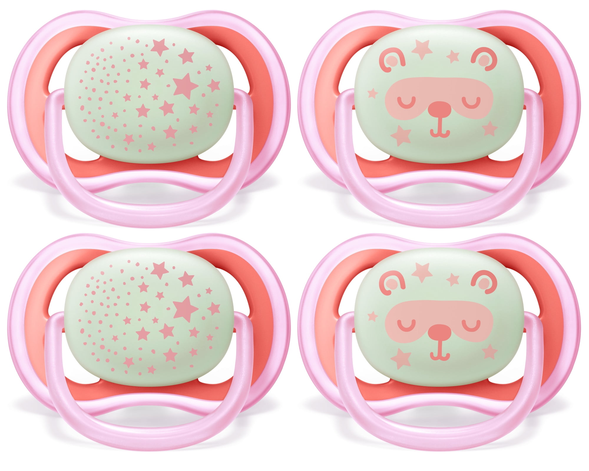 Philips Avent Ultra Air Nighttime Pacifier 6 18 Months Pink 4 Pack Scf376 44 Walmart Com