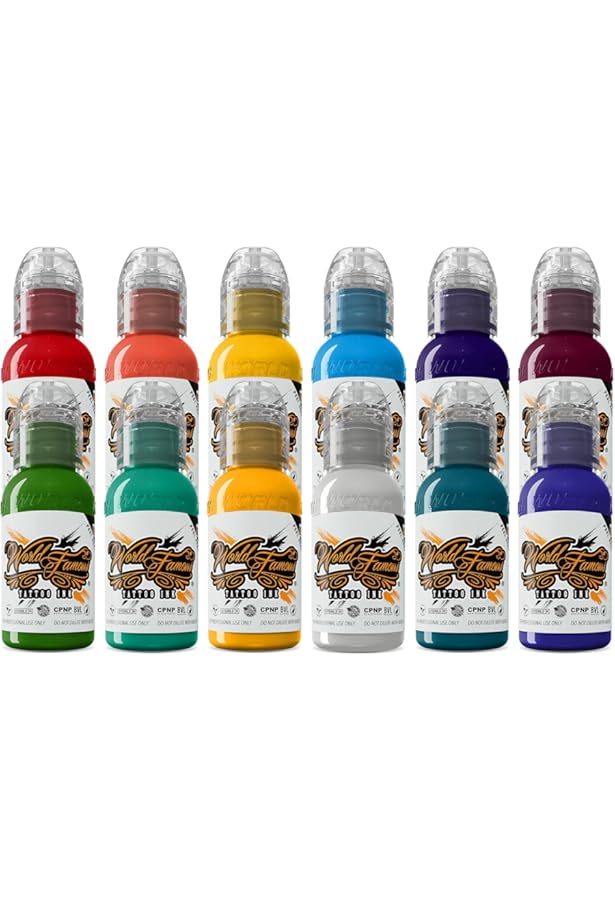Amazon Com World Famous Tattoo Ink 16 Color Tattoo Kit 1 Professional Tattoo Ink In Color Assortment Includes White Tattoo Ink Skin Safe Permanent Tattooing Vegan Non Toxic 1 Oz